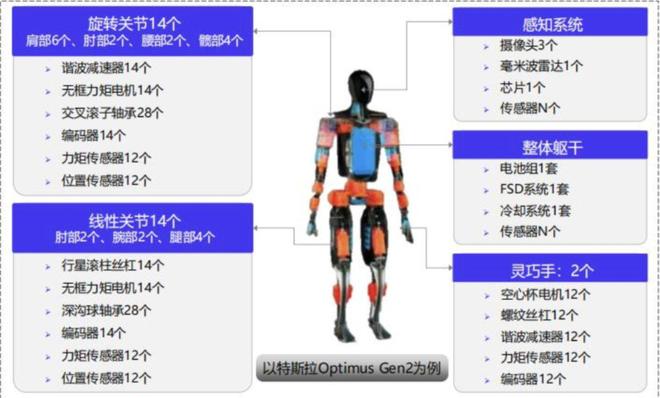 目前,主流人形机器人如特斯拉Optimus单台搭载14-20个谐波减速器(占执行器总量的71.4%),而高自由度机型如Figure 02甚至采用全谐波方案(39个/台)。